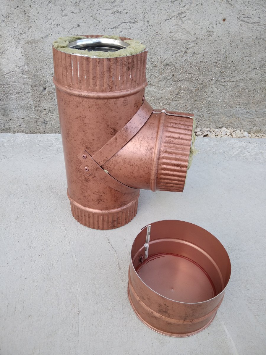 Raccordo inox a T 90° coibentato con intercapedine in lana di roccia e rivestimento esterno in lamiera di Alluminio preverniciato.