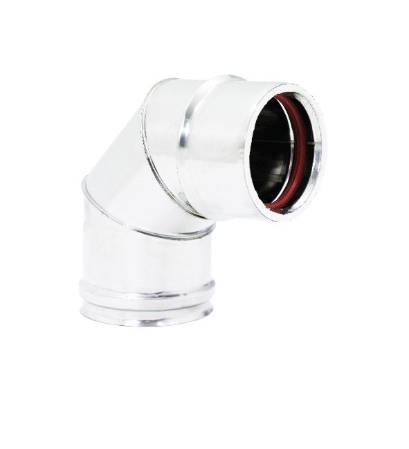 Gomito a 90° in acciaio inox doppia parete coibentato con intercapedine da 10 mm.