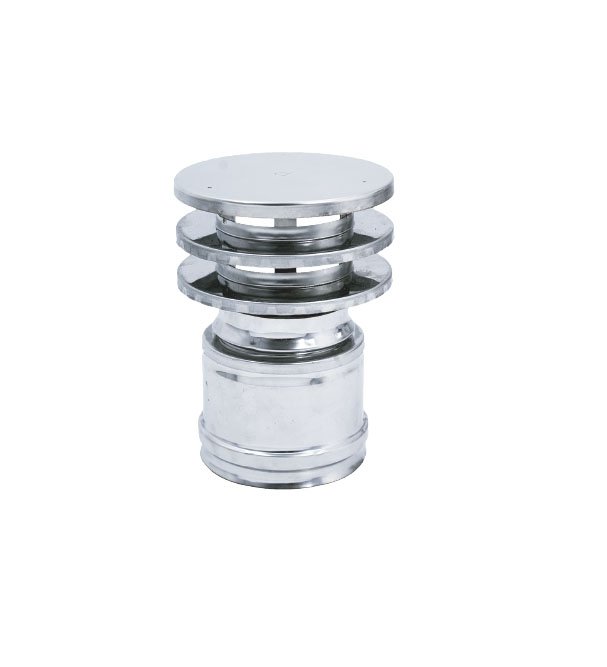 Cappello lamellare in acciaio inox doppia parete coibentato con intercapedine da 10 mm.