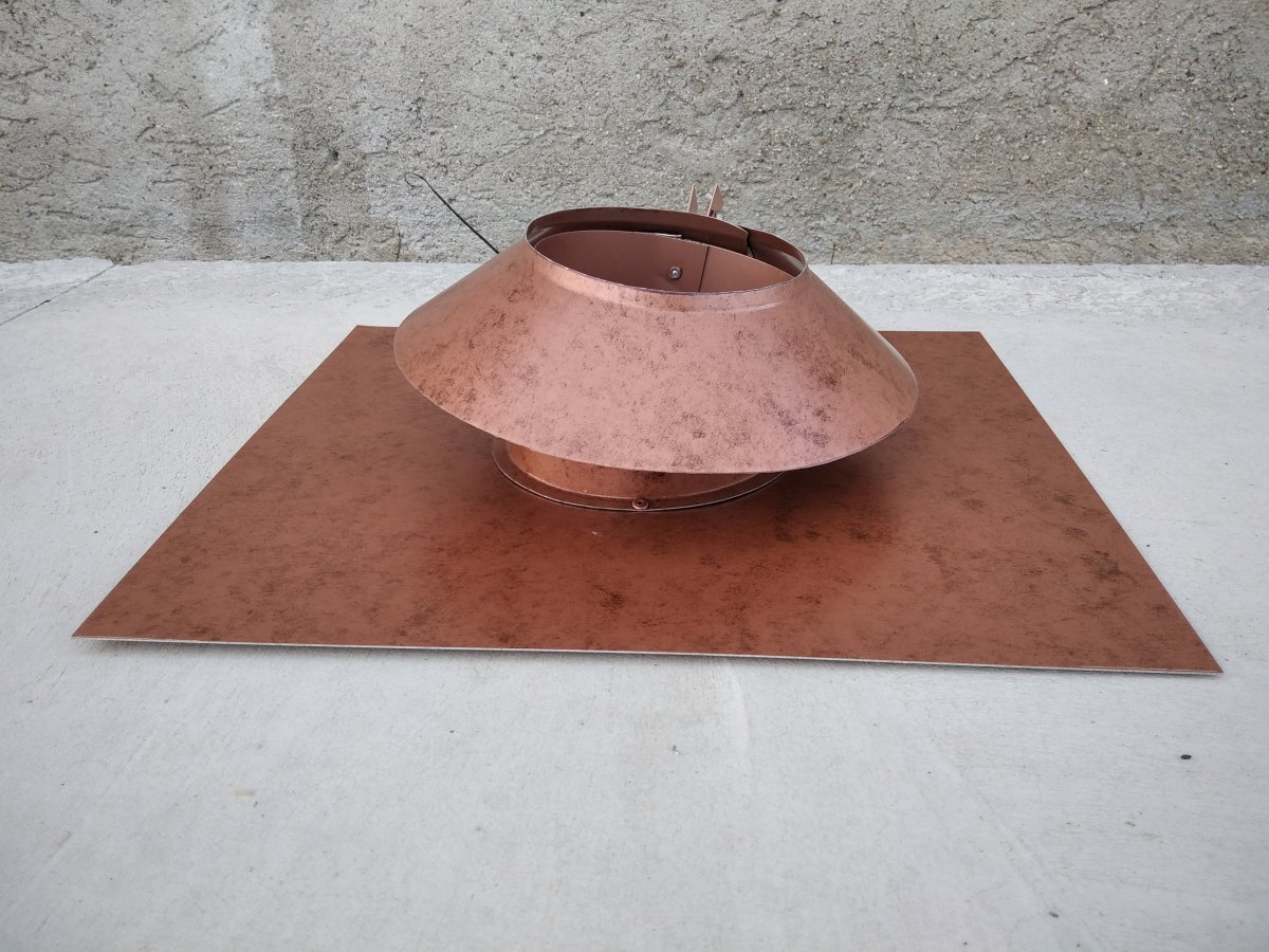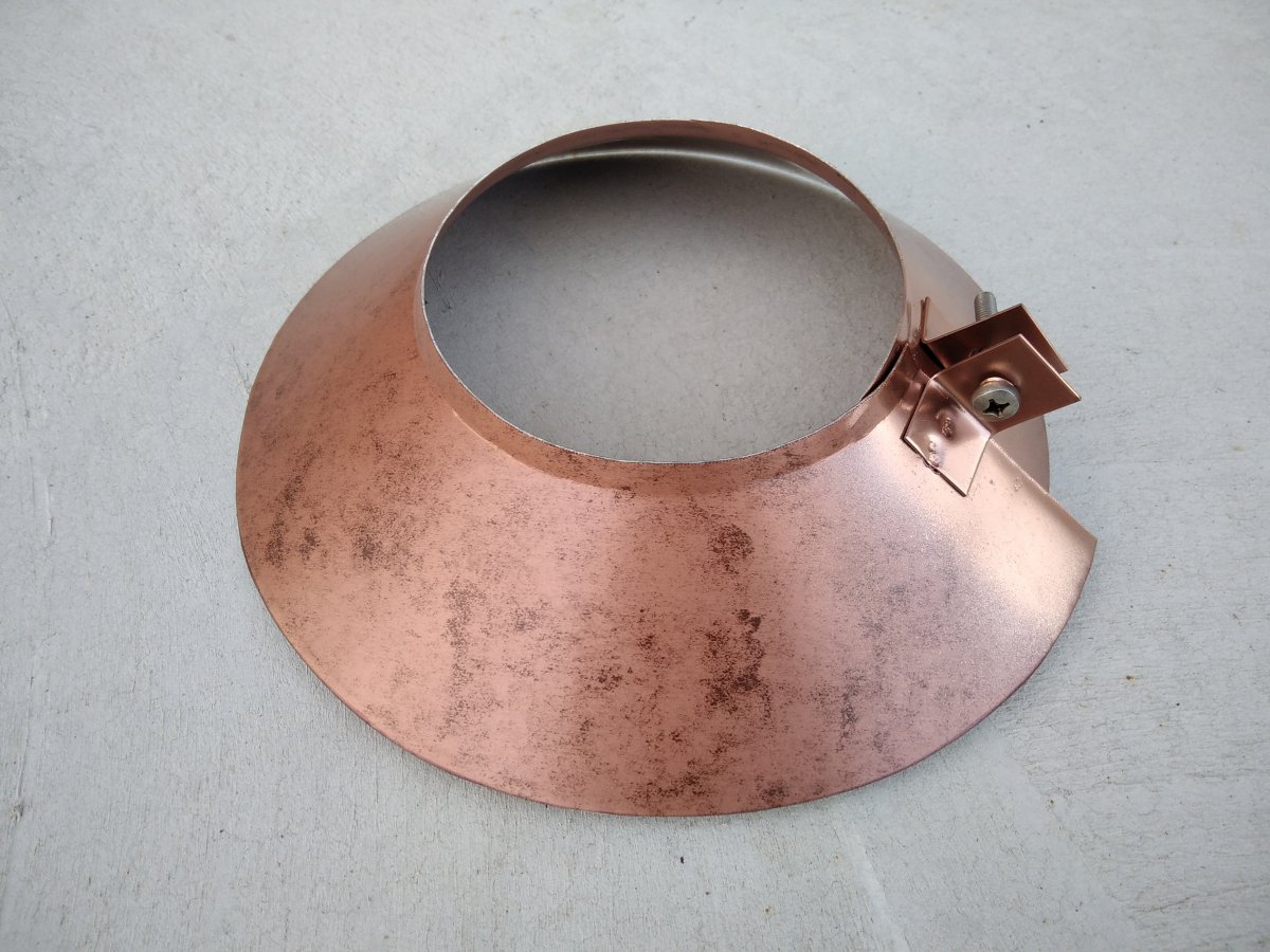 Collare parapioggia in lamiera preverniciata da installare in abbinamento alla conversa con foro passante per evitare infiltrazioni di acqua piovana nella fessura fra lamiera e tubo.