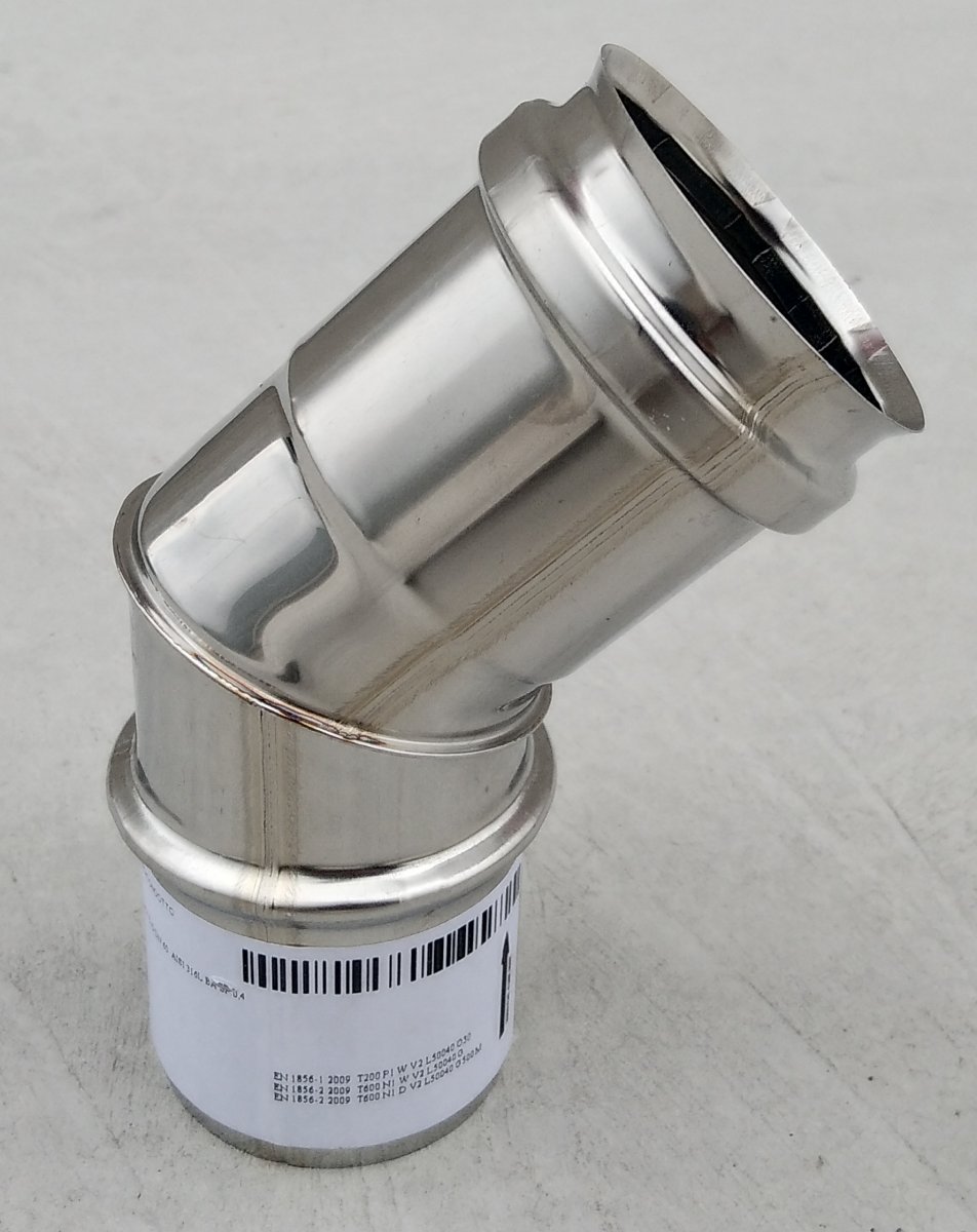 GOMITO A 45° INOX AISI 316 MONOPARETE