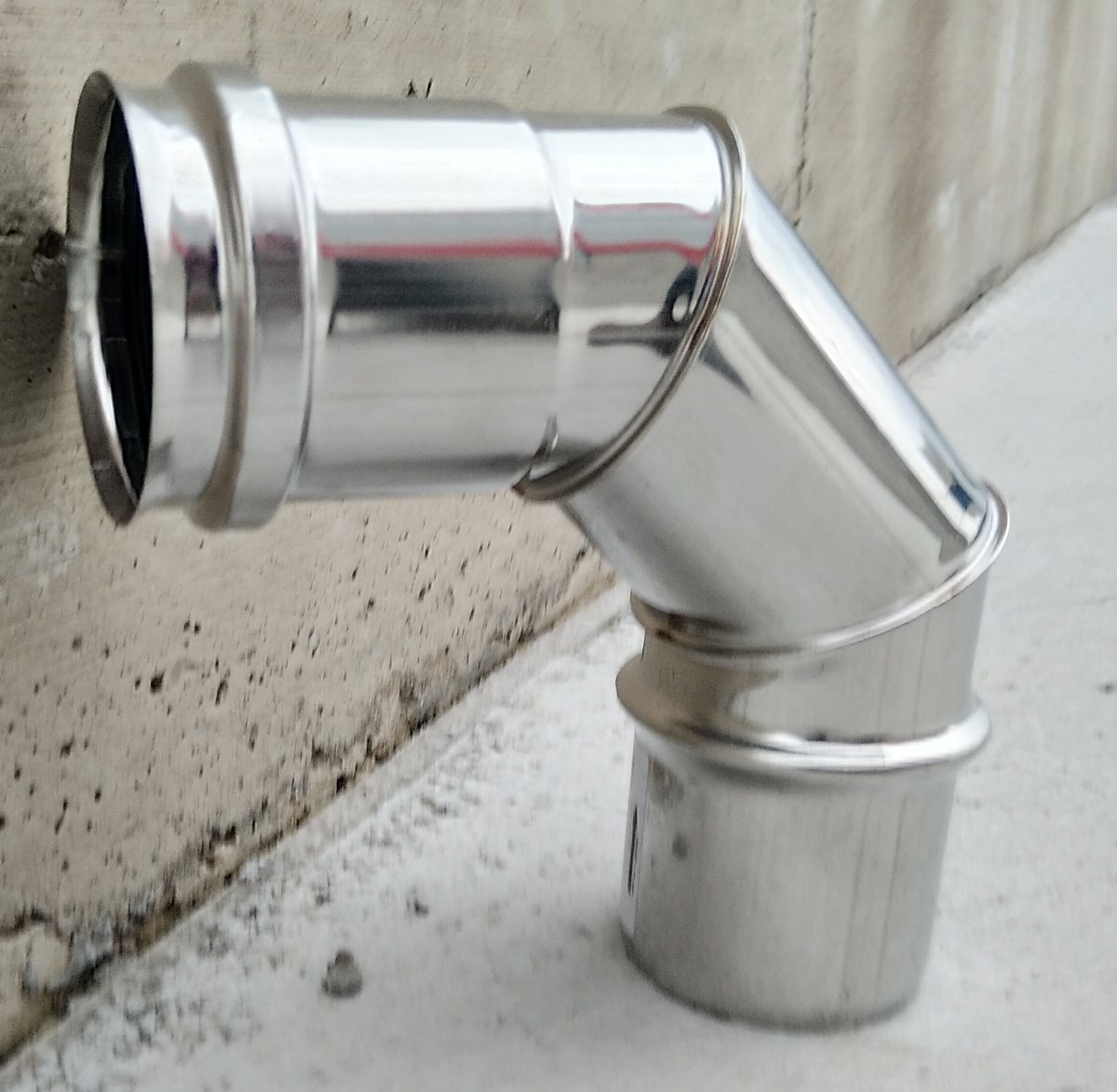 Gomito a 45° in acciaio inox AISI316 innesto maschio-femmina con alloggio per guarnizione lamellare.