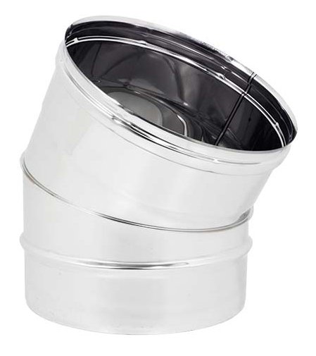 GOMITO IN ACCIAIO INOX AISI304 SP. 5/10 A 15°. NECESSARIO AD EFFETTUARE DISASSAMENTI LIEVI SENZA EFFETTUARE PARTICOLARI STROZZATURE AL TIRAGGIO DELLA CANNA FUMARIA. INNESTO MASCHIO-FEMMINA.
