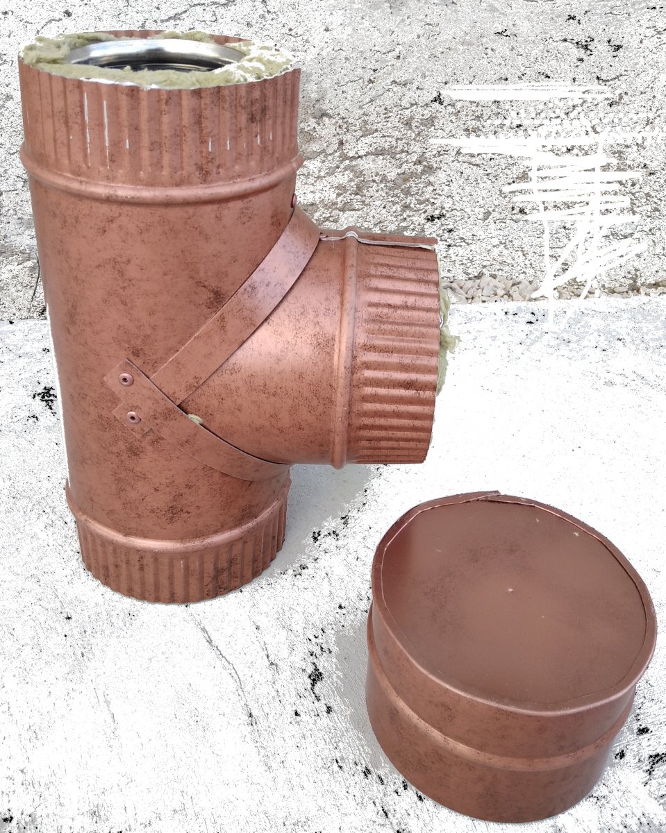 Modulo d'ispezione con tappo doppia parete con l'interno in acciaio inox, coibentazione in lana di roccia ed esterno in lamiera di alluminio preverniciato. Può essere utilizzato per le necessarie operazioni di pulizia della canna fumaria e per verificare le condizioni della stessa. Fa parte della linea di tubazioni coibentate che abbinano la sicurezza e la funzionalità dell'Acciaio inox coibentato e la gradevolezza estetica dell'Alluminio effetto rame antichizzato per installazioni in ambienti rustici o comunque dove non è adatto l'effetto lucido del tubo in acciaio inox. Per chiarimenti contattare l'ufficio tecnico. Disponibili tutti i diametri commerciali.