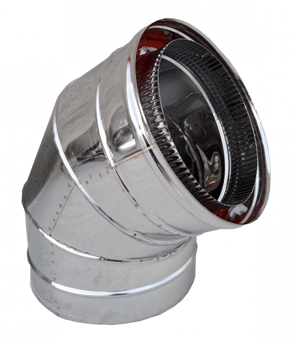 Gomito in acciaio inox doppia parete coibentato a 3 settori, realizzabile su ordinazione, con gradazione speciale su misura da 41 a 67°.