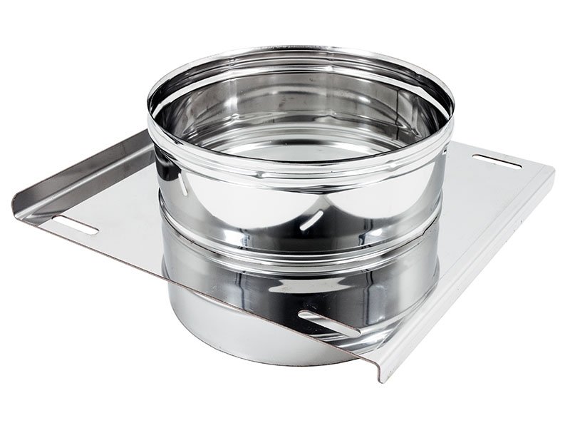 Piastra in acciaio inox di supporto, per installazione a solaio o a parete con alette. Predisposta con innesto maschio-femmina