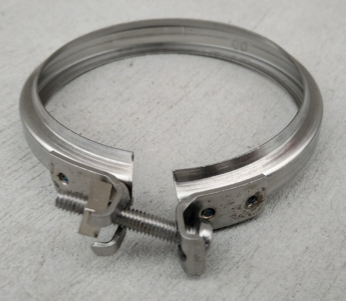 Fascetta inox di bloccaggio, necessaria per l'assemblaggio dei vari componenti della canna fumaria.