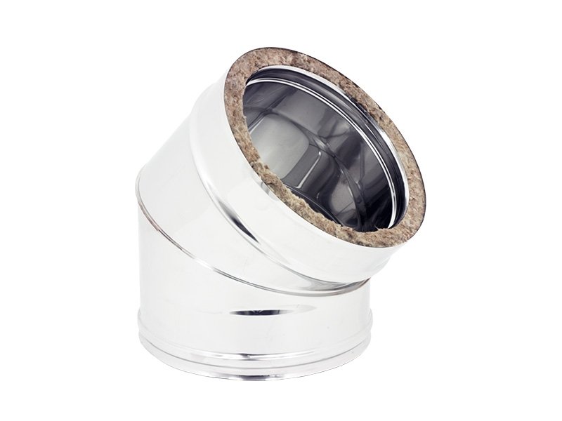 Gomito in acciaio acciaio inox doppia parete coibentato da 25mm. a 45°