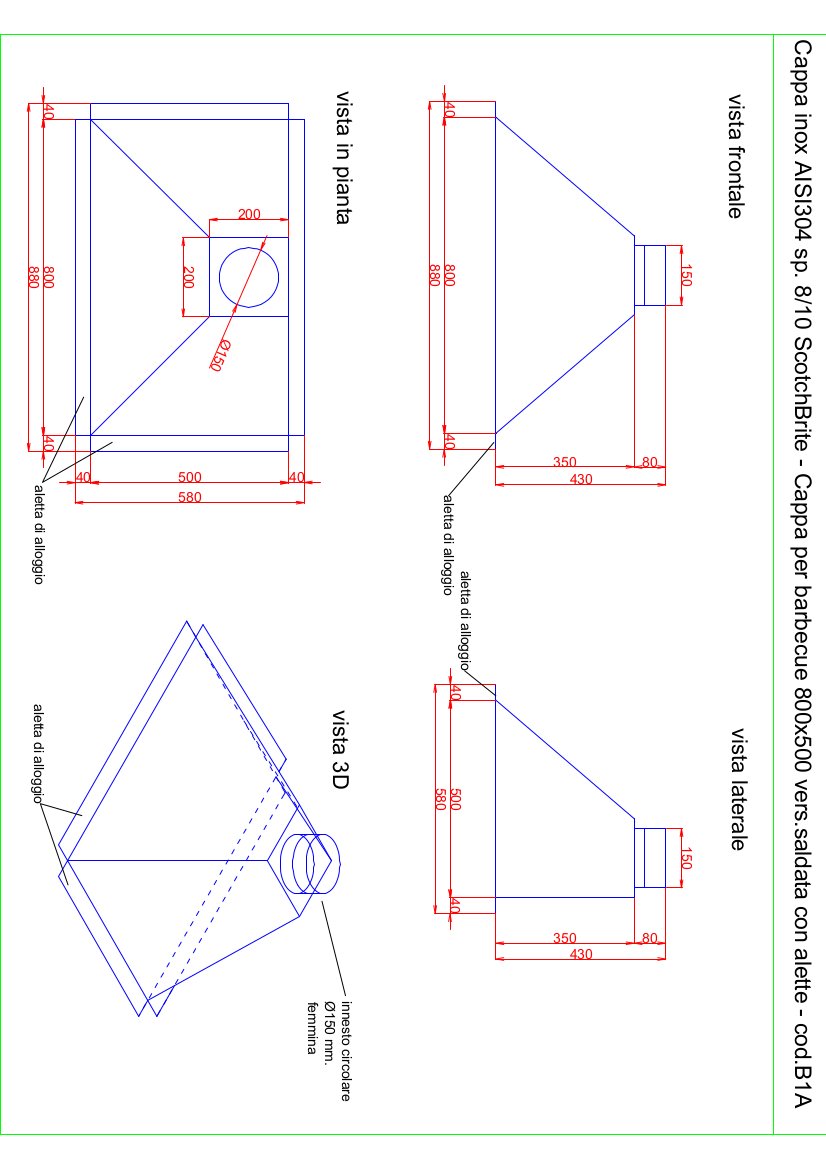 - base rettangolare mm. 800x500 h. 350 con uscita fumi Ø150