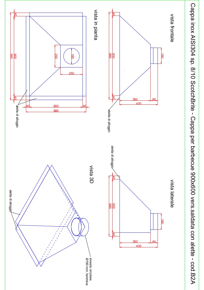 - base rettangolare mm. 900x600 h. 350 con uscita fumi Ø180