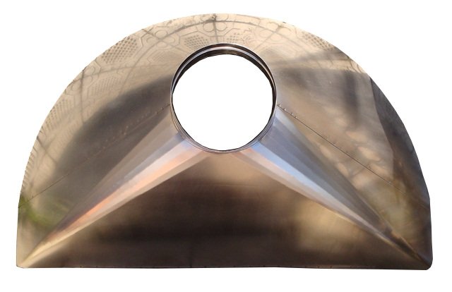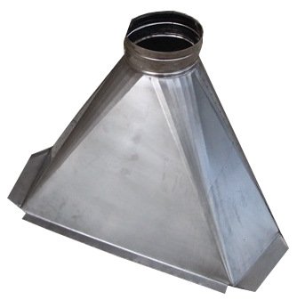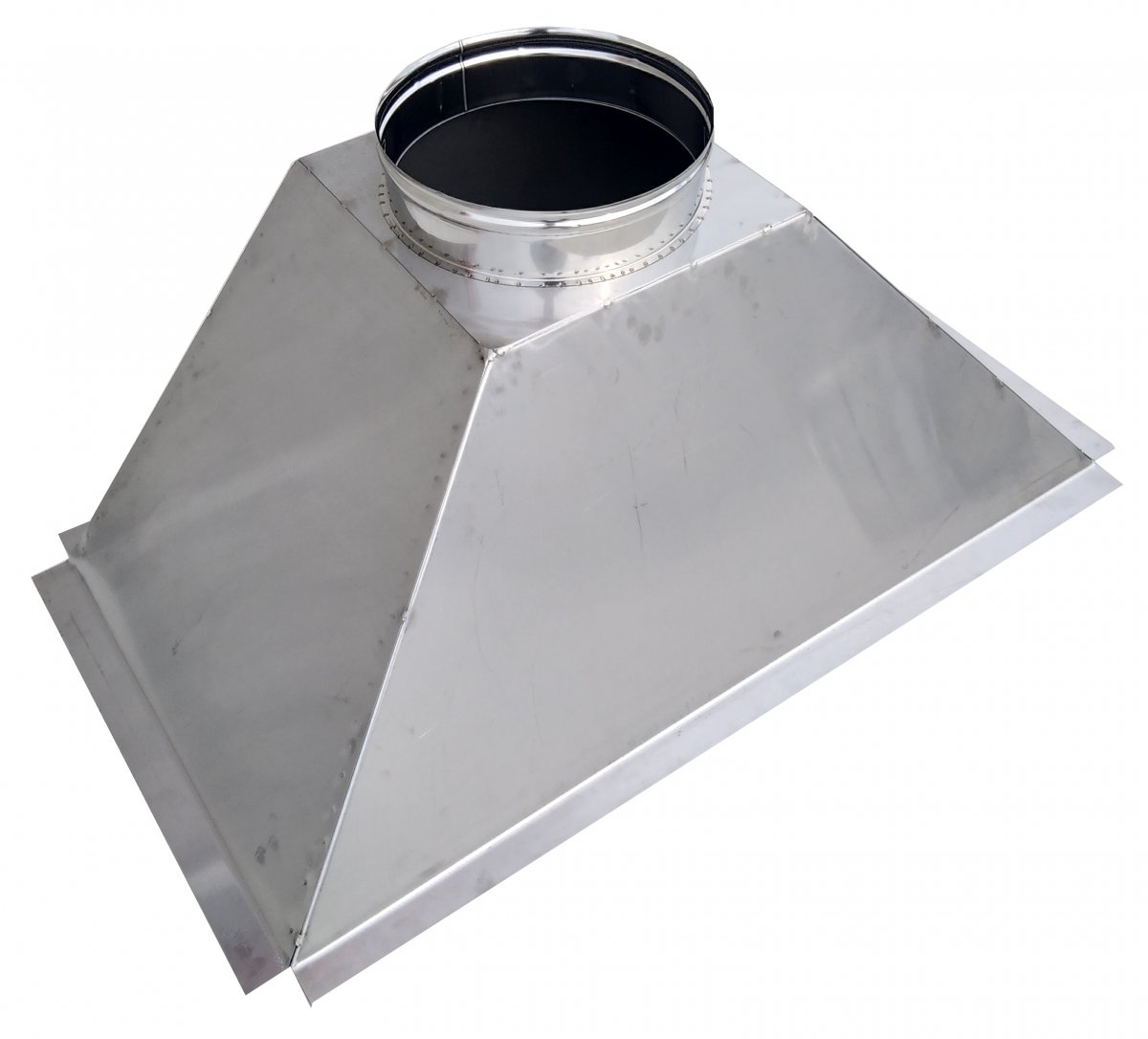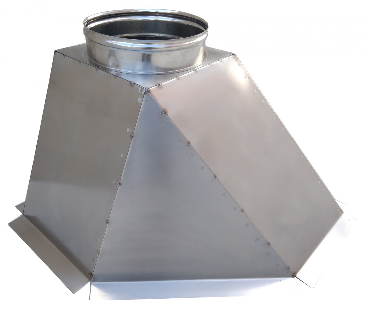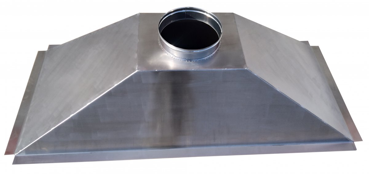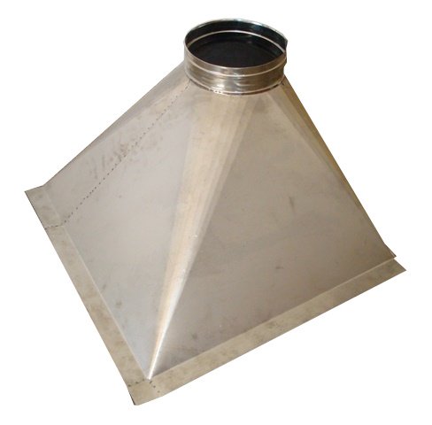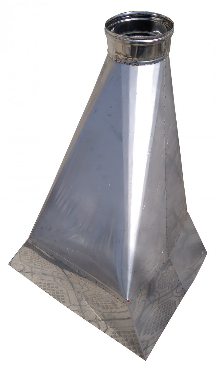 Cappa per camino in Acciaio Inox AISI304 sp. 1 mm. a base irregolare, realizzabile su ordinazione con misure e forma personalizzabili.