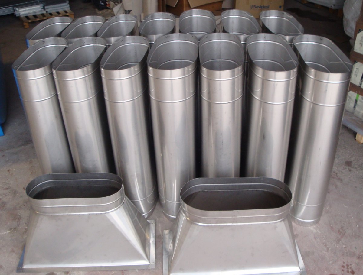 Tubazioni in acciaio inox monoparete a sezione speciale complete di raccordi, gomiti, comignoli, elementi di fissaggio e tutto il necessario per la realizzazione degli impianti. Possibilità di fornitura tubazioni ed accessori con le seguenti sezioni speciali realizzabili su misura: