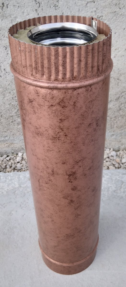 Tubo inox coibentato h.1000 con intercapedine in lana di roccia e rivestimento esterno in lamiera di Alluminio preverniciato.