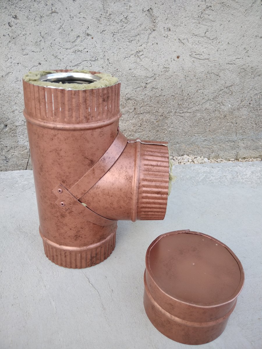 Raccordo inox a T 90° coibentato con intercapedine in lana di roccia e rivestimento esterno in lamiera di Alluminio preverniciato.