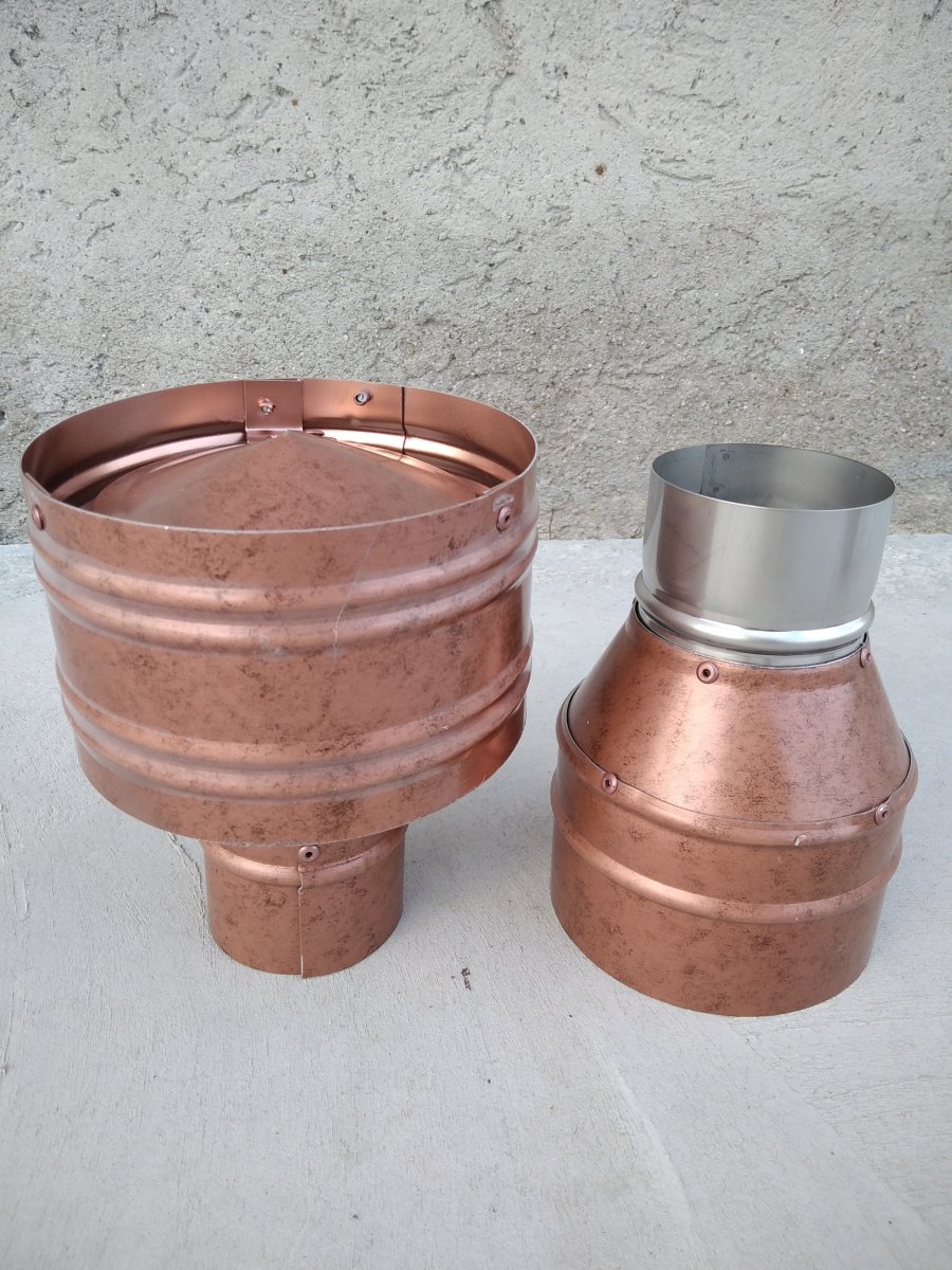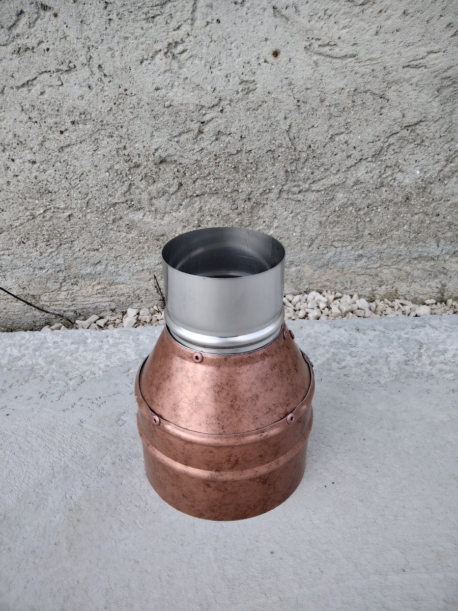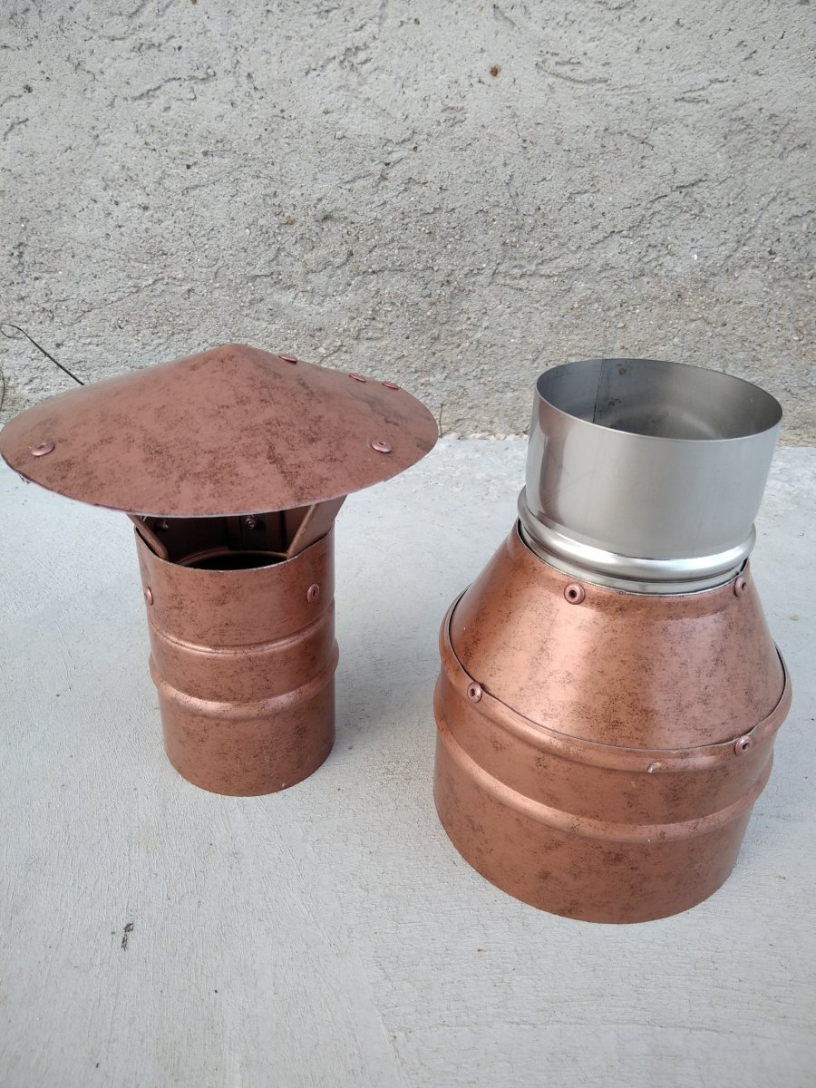 Terminale conico inox coibentato con intercapedine in lana di roccia e rivestimento esterno in lamiera di Alluminio preverniciato.