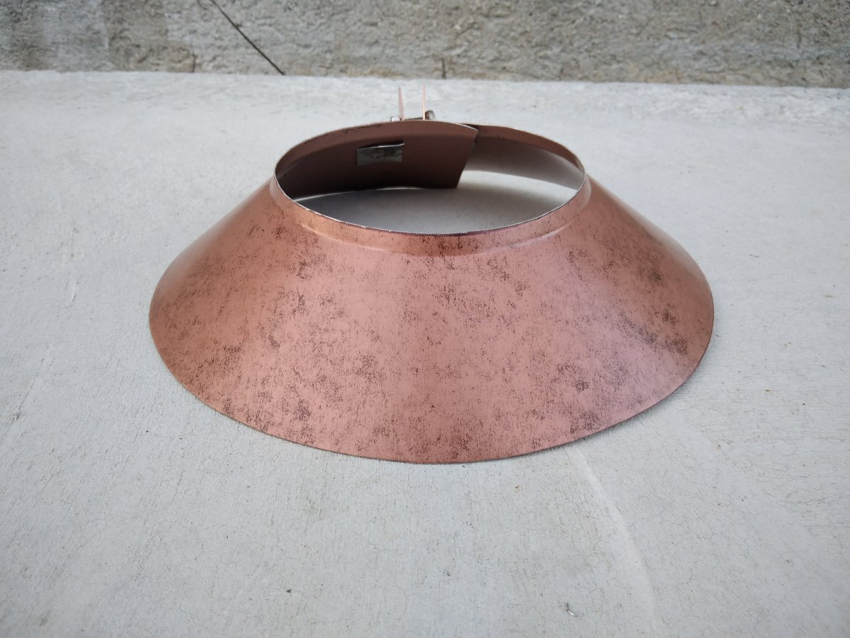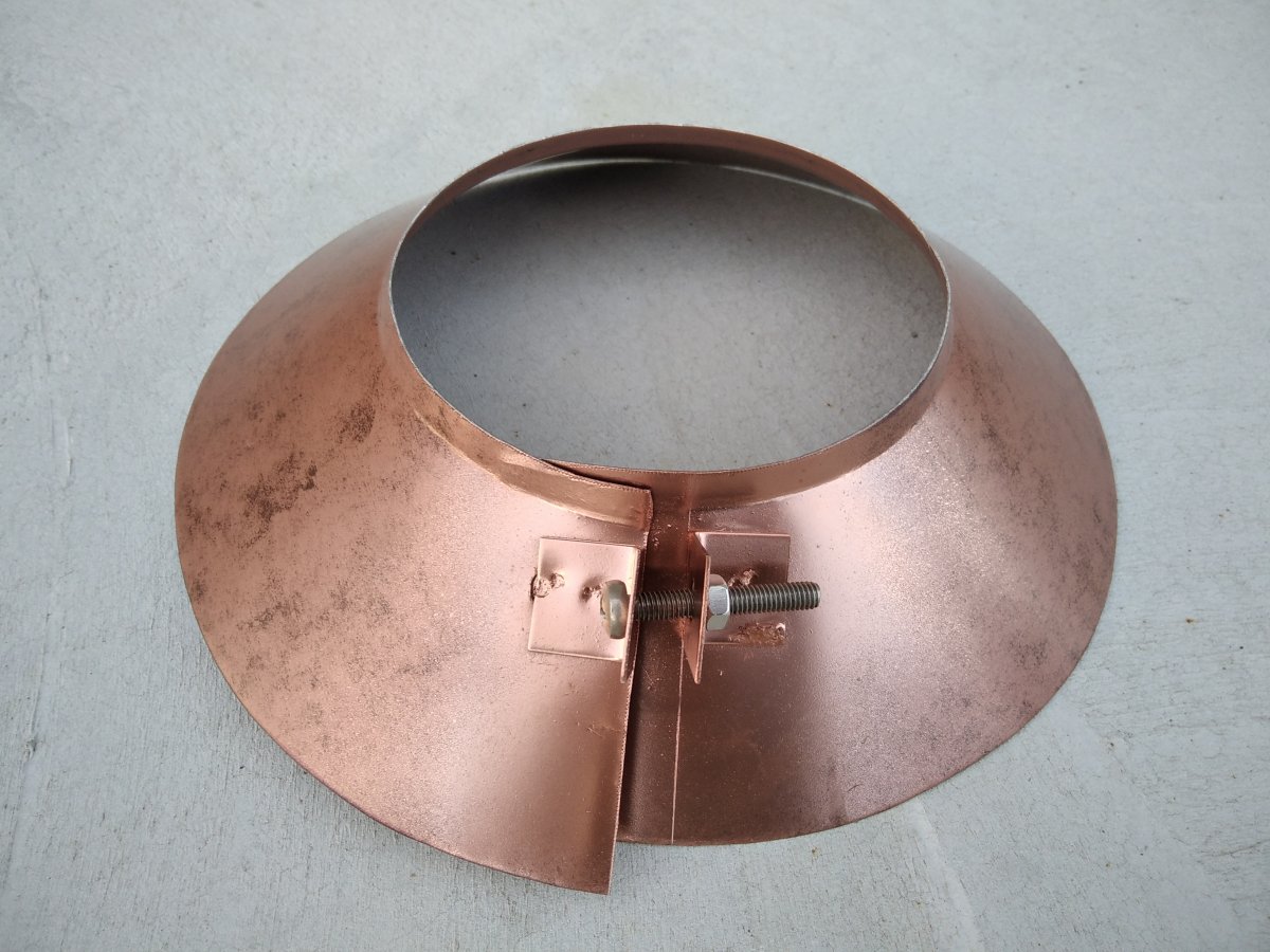 Collare parapioggia in lamiera preverniciata da installare in abbinamento alla conversa con foro passante per evitare infiltrazioni di acqua piovana nella fessura fra lamiera e tubo.