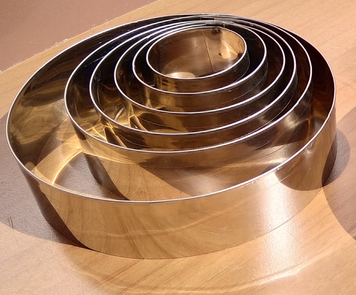 Coppapasta inn Acciaio Inox AISI304 di forma circolare spessore 0,5 mm. per tagli netti e precisi. Lato da maneggiare con piega antitaglio per lavorare in sicurezza. Questo semplice utensile, garantisce igiene e versatilità potendo essere utilizzato per varie funzioni quali la cottura in forno, tagliare forme perfette di pan di Spagna e impasti cotti vari, dare forma a mousse e semifreddi.
