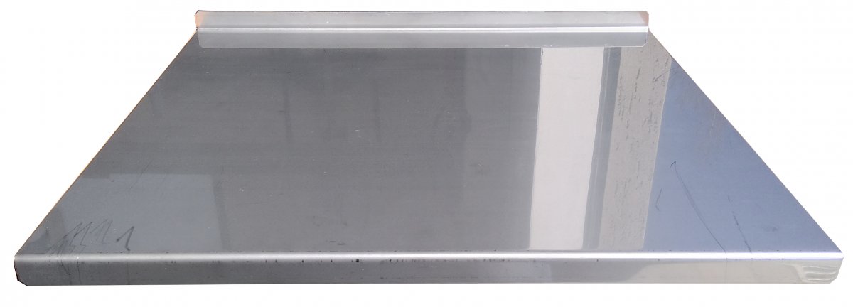 Piano di lavoro in Acciaio Inox AISI304 sp. 15/10 dimensione cm. 50 x 46 con piega a battuta da 2 cm. su entrambi i lati da 50 cm. Ideale per lavorare gli impasti di pizza, pane, dolci, pasta fatta in casa etc. etc. garantisce funzionalità, igiene e durata nel tempo. Si adatta a tutti i tipi di supporto quali pensili, tavoli e piani in genere.