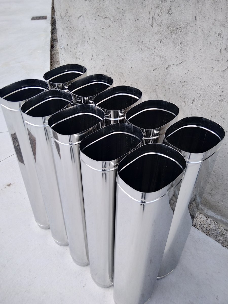 Tubazioni in acciaio inox monoparete a sezione speciale complete di raccordi, gomiti, comignoli, elementi di fissaggio e tutto il necessario per la realizzazione degli impianti. Possibilità di fornitura tubazioni ed accessori con le seguenti sezioni speciali realizzabili su misura: