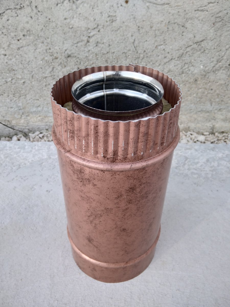 Tubo inox coibentato h.250 con intercapedine in lana di roccia e rivestimento esterno in lamiera di Alluminio preverniciato.